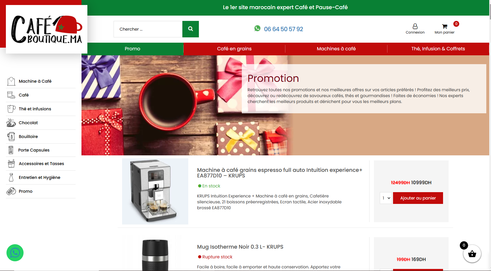 CaféBoutique.ma est le premier site marocain de vente en ligne Café et Pause-café.