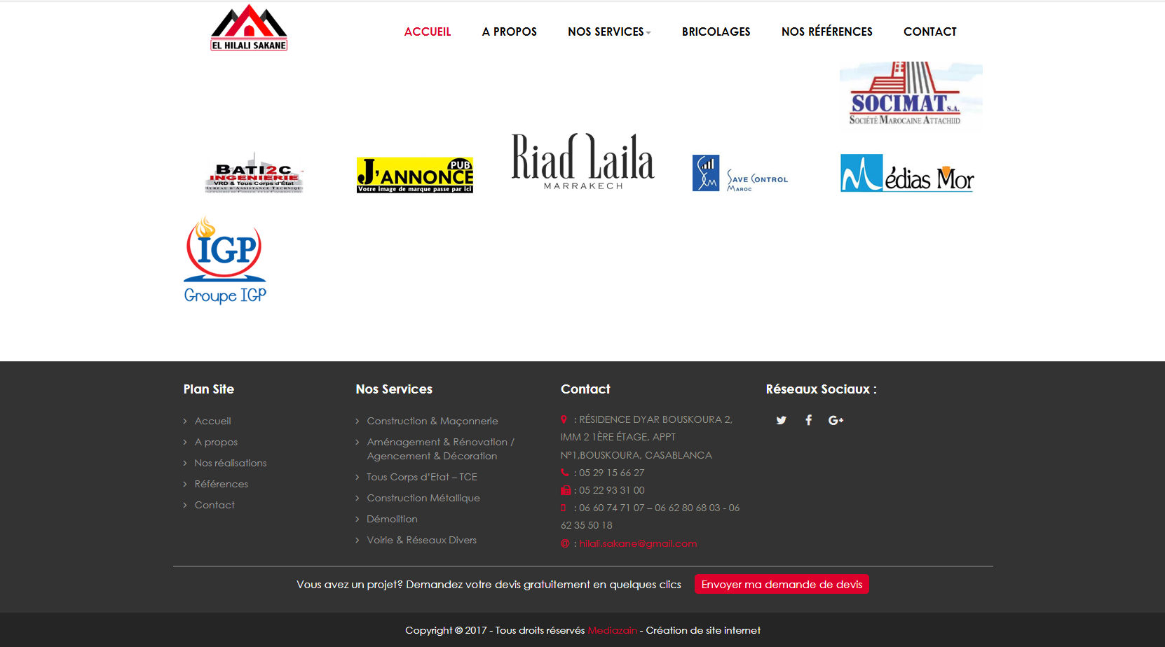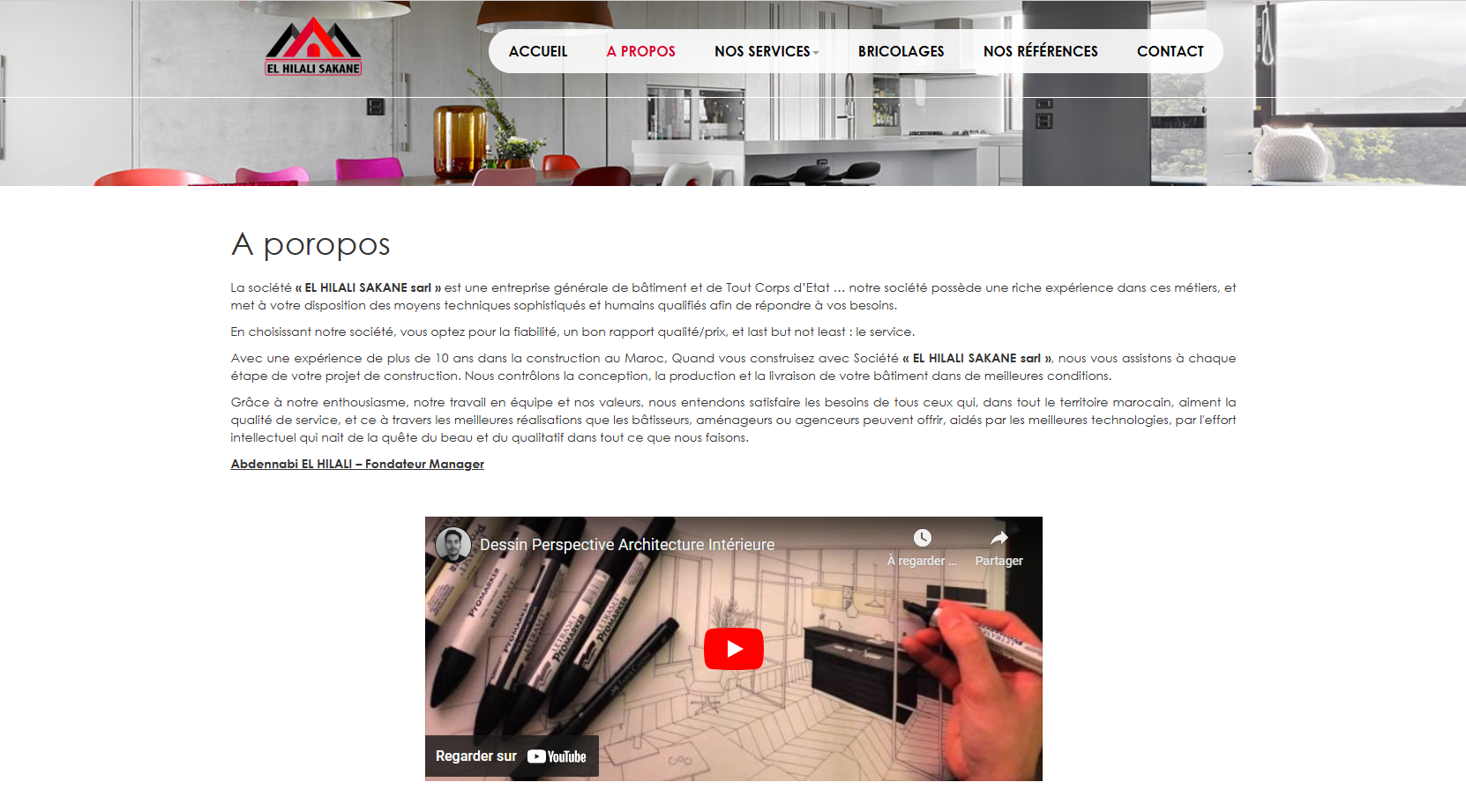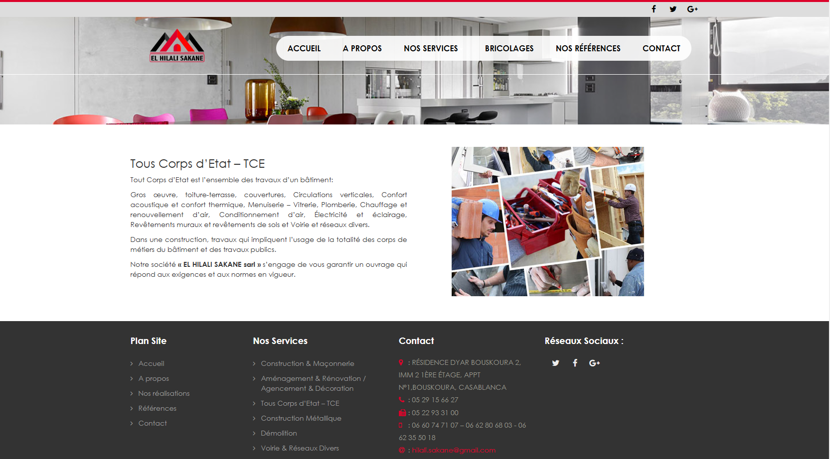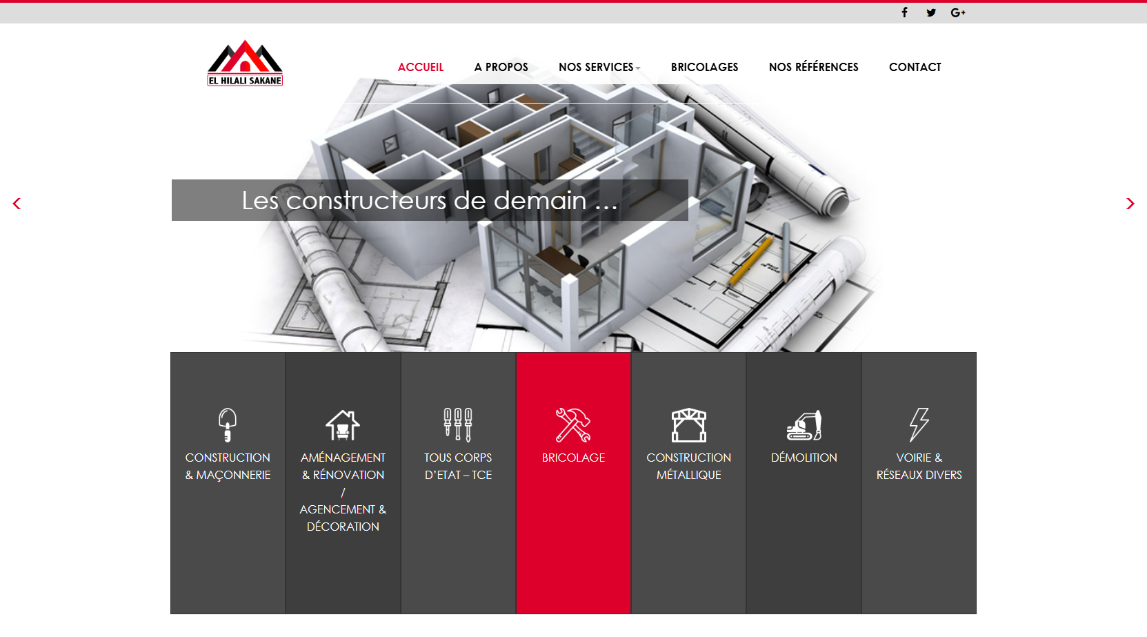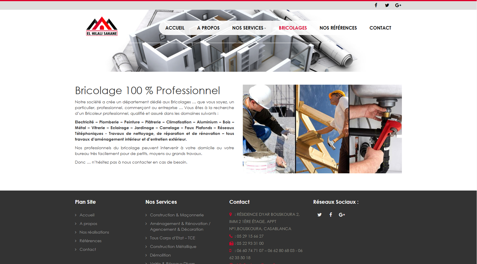 La société « EL HILALI SAKANE sarl » est une entreprise générale de bâtiment et de Tout Corps d’Etat … notre société possède une riche expérience dans ces métiers, et met à votre disposition des moyens techniques sophistiqués et humains qualifiés afin de répondre à vos besoins.
